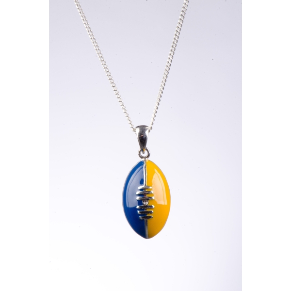 This pendant is Australian designed and Crafted from the finest 925 sterling silver with the use of enamel for the teams colours. This enamels process involves the artisan hand painting the pendant with the specific teams colours and correct layout, once this is done they fuse the powdered glass to the sterling silver substrate by firing, of temperatures between 750 and 850 °C. The powder melts, flows, and then hardens to a smooth, durable vitreous coating. The word “Enamel” comes from the Latin vitreum, meaning “glassy”. Once this enameling process has been completed the remaining visible 925 sterling silver is overlaid with a protective coating of rhodium, which is a rare, silvery-white, hard, corrosion-resistant, and chemically inert transition metal. It is also a member of the platinum group. This ensures there is no dulling, tarnishing or rusting of your SFJ piece.